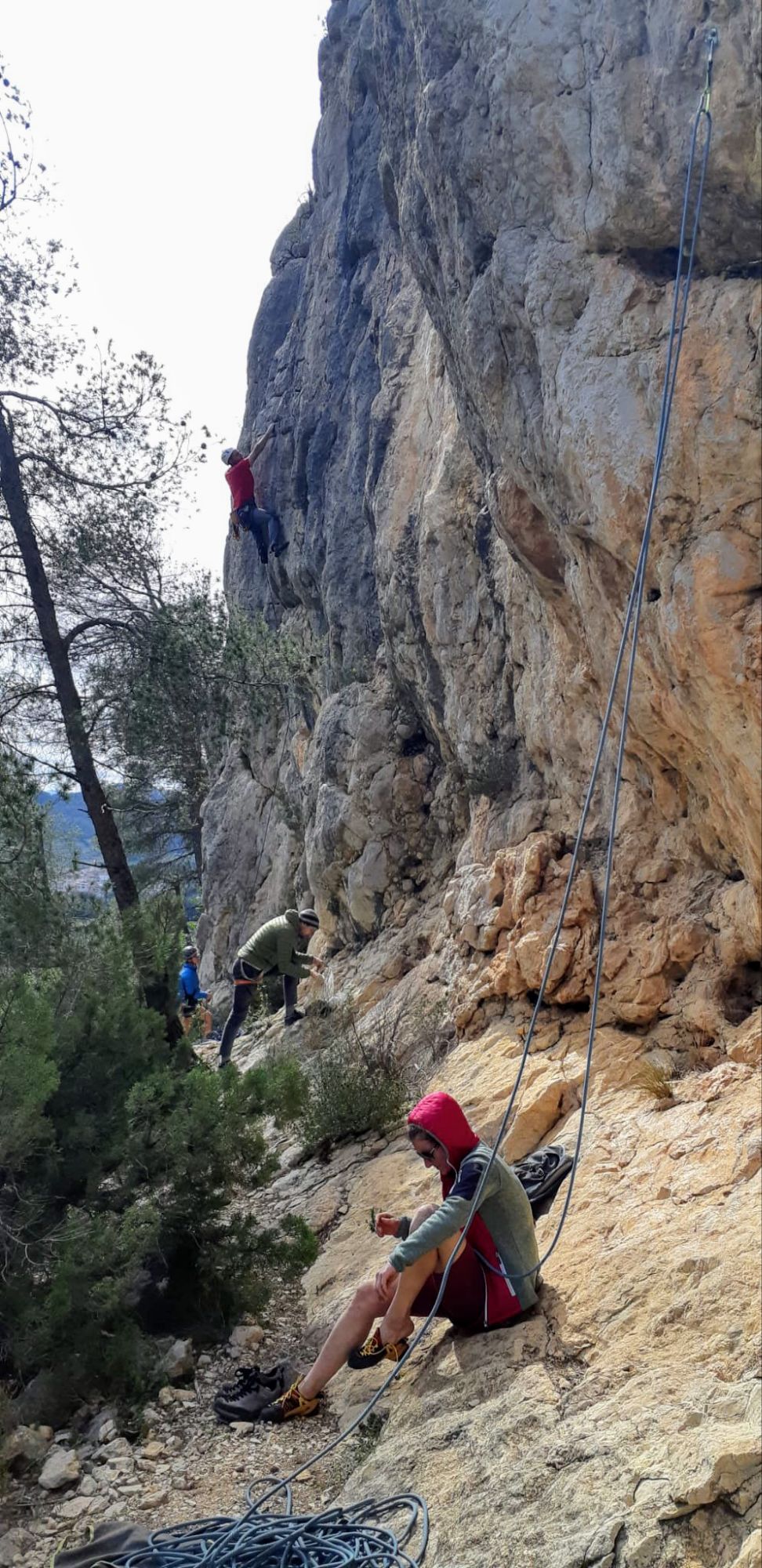 We visited during the Easter holidays and had most crags entirely to ourselves. We were looking for routes mostly between 6b and 7b. The sectors we chose were Cova de Sant Nofre (15 routes, 6a+ to 7c+, height 20-25m), Roca Redonda (50 routes, 5 to 7c, max. height 20m) and Els Caus (28 routes, 5 to 8a, average height 30m).