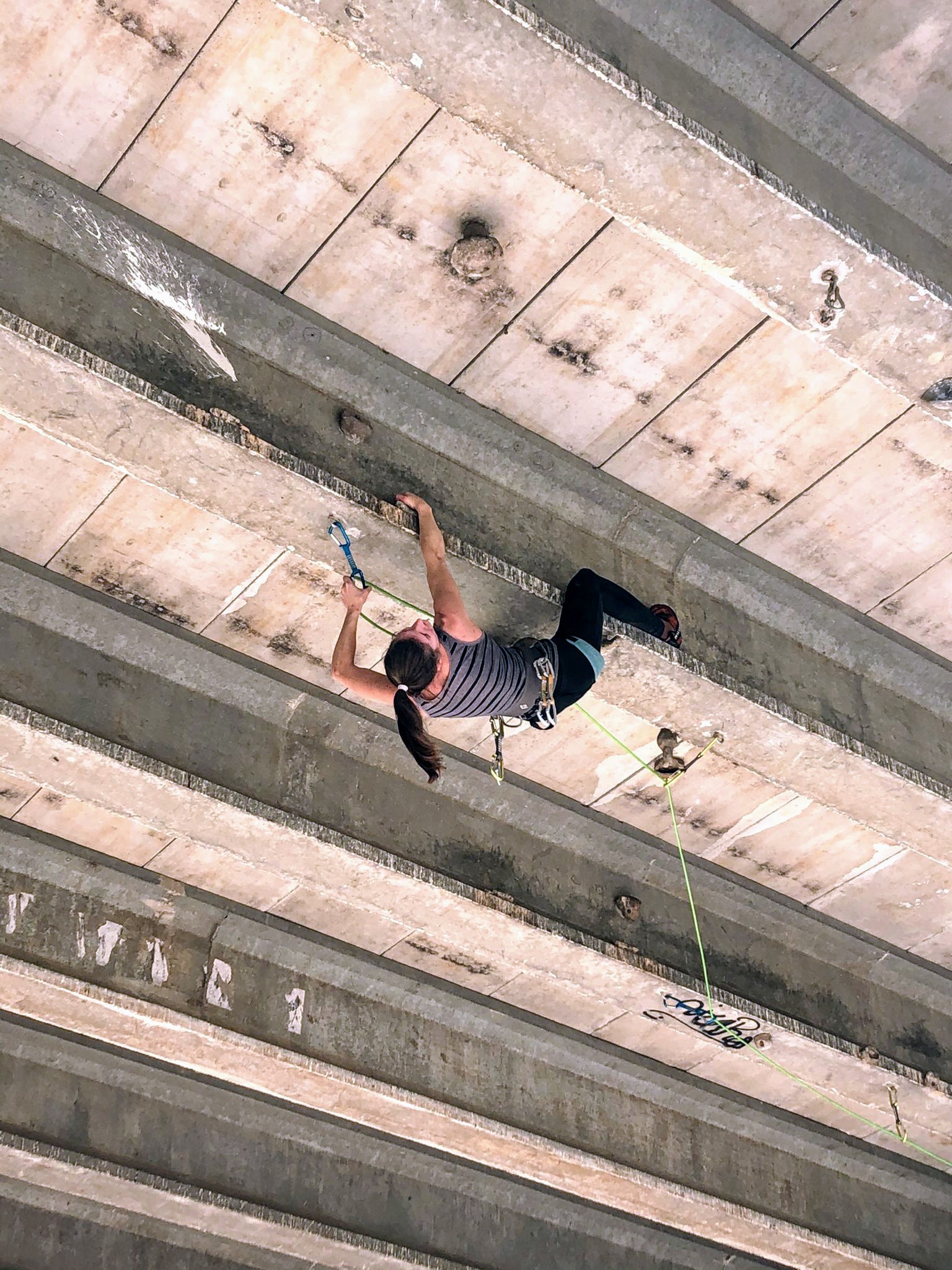 On one side of the Viaducte de Vallcarca (or Puente de Vallcarca) you can find climbing holds and bolds. The equipment is very old. The bolds and most holds are still good but you can’t use any of the anchors. We downclimbed to clean the routes. Grades are about 4/5.